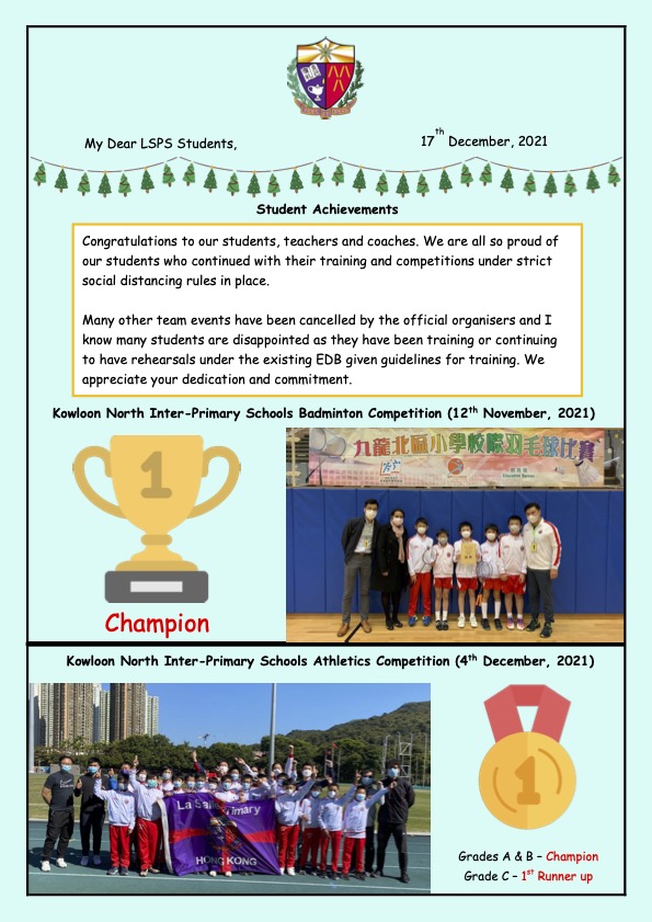 Letter from Principal - Dec 2021